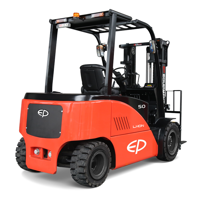 The 10,000 lb. CPD50F8 is a powerful lithium pneumatic forklift that empowers large fleets to convert from LPG and diesel to electric. Standard onboard charging allows a charge from any standard 110V outlet. Adopting a lithium battery to replace combustion engines and lead-acid batteries saves the troubles of lead-acid battery maintenance. Moreover, since EP's lithium batteries are independently developed and manufactured by EP, they contain a battery management system (BMS), which can monitor and protect each cell. Using a high-efficiency, maintenance-free AC motor with sufficient power ensures that the truck can run smoothly on uneven surfaces and affords a longer battery life.
